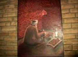 Yesi'deki halvethaneye konulmuş olan ve Ahmed Yesevi'yi halvet yaptığı yer altı hücresinde gösteren temsili resim. |
