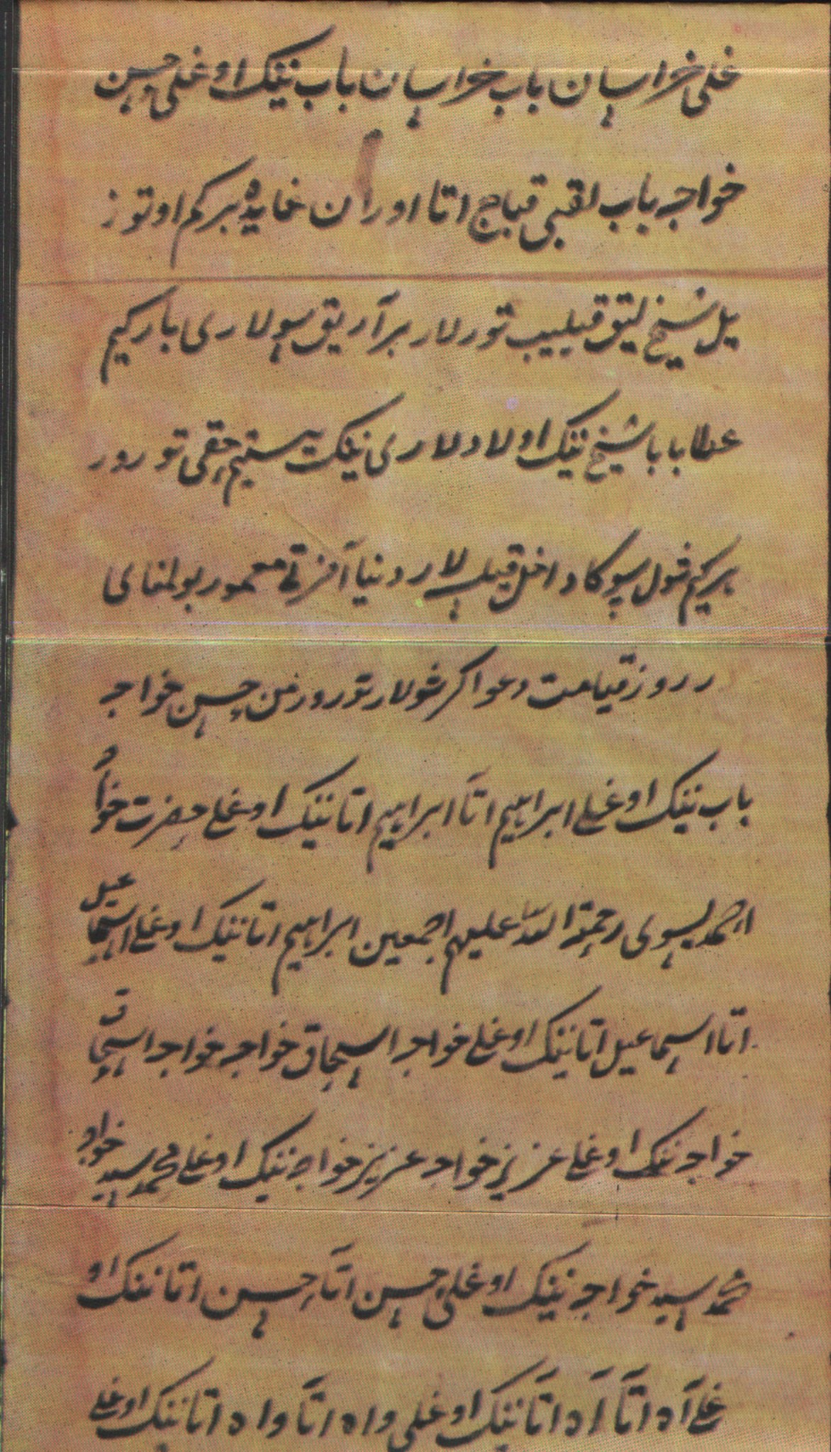 Ahmed Yesevi'yi bütün Türklerin bağlı olduğu silsilenin başı olarak gösteren satırlar (1894) |