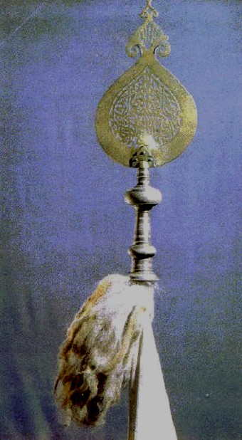 Yesevi Dergahı sancağının tuğ şeklindeki baş kısmı. |