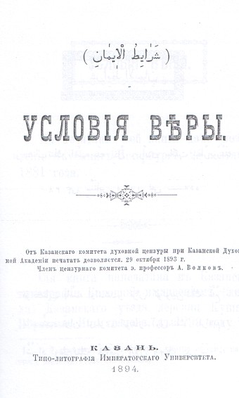 Şeraitü'l-İman (İmanın Şartları) , (Kazan, 1894) |